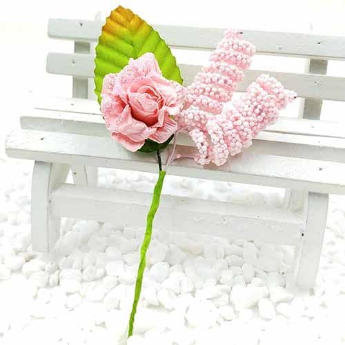 Floral embellishments, pink, green, 10.5cm x 5.8cm, 1 Flower, [ST1246] |