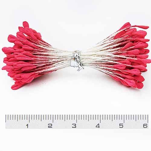 These flower stamens are non-shiny. The flower stamens can be used in a variety of crafts including: making nylon flowers, making paper flowers, cake decorations, flower wiring and flower arranging.