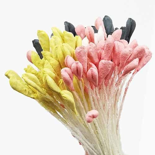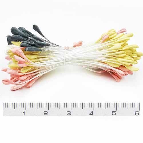 These flower stamens are non-shiny. The flower stamens can be used in a variety of crafts including: making nylon flowers, making paper flowers, cake decorations, flower wiring and flower arranging.
