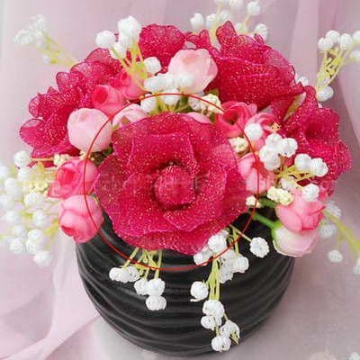 Mesh Nylon flower making kit, red, 8 flowers, 9cm (diameter of flowers), Rose, (xs030) |