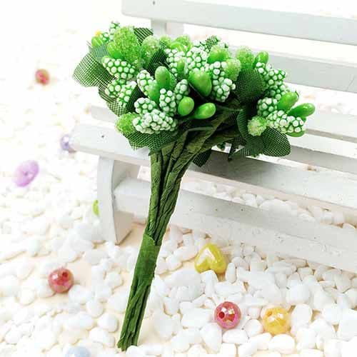 Mini Bouquet Flower Stamen - Speckled, green, 12 pieces, Long 9.5cm