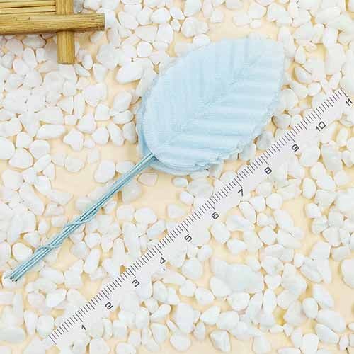 Rose leaf, Artificial fibers and wires, Light blue, 11cm x 3cm [approximate], 10 pieces, [ST1091] |