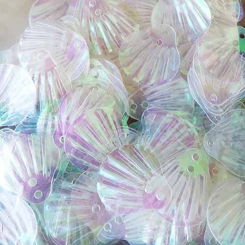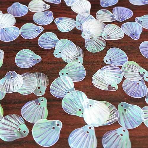 Sequins, Clear colour, 13mm x 14mm, 100 pieces (approximate), 5g, Faceted designer shapes, Sequins are shiny