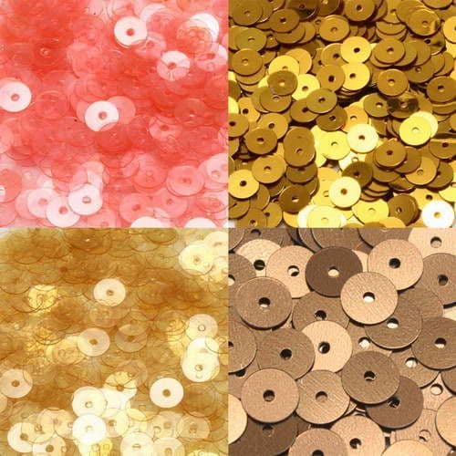This product contains a number of items, see below for more details. Item 1: Sequins Diameter (mm): 6 Quantity (numbers per pack): 520 (approximate) Number of grams: 5 grams Material: Plastic Shape: Disc shape Position of sequin hole: Hole in the middle Colour: Red Translucence: Transparent Are the sequins shiny?: Sequins are NOT shiny Item 2: Sequins Diameter (mm): 6 Quantity (numbers per pack): 525 (approximate) Number of grams: 5 grams Material: Plastic Shape: Disc shape Position of sequin hole: Hole in the middle Colour: Gold colour Translucence: Opaque (cannot see through) Are the sequins shiny?: Sequins are shiny Item 3: Sequins Diameter (mm): 6 Quantity (numbers per pack): 520 (approximate) Number of grams: 5 grams Material: Plastic Shape: Disc shape Position of sequin hole: Hole in the middle Colour: Light orange Translucence: Transparent Are the sequins shiny?: Sequins are NOT shiny Item 4: Sequins Diameter (mm): 6 Quantity (numbers per pack): 1050 (approximate) Number of grams: 10 grams Material: Plastic Shape: Disc shape Position of sequin hole: Hole in the middle Colour: Brown Translucence: Opaque (cannot see through) Are the sequins shiny?: Sequins are NOT shiny Description: Sequins Sets Postage and packaging (P&P) The total postage and packaging cost is made up of: The postage cost per item + A single cost for packaging The per item cost is: Delivery address in UK - £0.20 per item Delivery address in Europe (Excluding UK) - £0.30 per item Delivery address rest of the world (Excluding Europe) - £0.55 per item.
