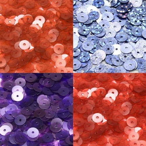 This product contains a number of items, see below for more details. Item 1: Sequins Diameter (mm): 6 Quantity (numbers per pack): 520 (approximate) Number of grams: 5 grams Material: Plastic Shape: Disc shape Position of sequin hole: Hole in the middle Colour: Brick red Translucence: Transparent Are the sequins shiny?: Sequins are NOT shiny Item 2: Sequins Diameter (mm): 6 Quantity (numbers per pack): 520 (approximate) Number of grams: 5 grams Material: Plastic Shape: Disc shape Position of sequin hole: Hole in the middle Colour: Light blue Translucence: Opaque (cannot see through) Are the sequins shiny?: Sequins are shiny Item 3: Sequins Diameter (mm): 6 Quantity (numbers per pack): 520 (approximate) Number of grams: 5 grams Material: Plastic Shape: Disc shape Position of sequin hole: Hole in the middle Colour: Dark purple Translucence: Transparent Are the sequins shiny?: Sequins are NOT shiny Item 4: Sequins Diameter (mm): 6 Quantity (numbers per pack): 520 (approximate) Number of grams: 5 grams Material: Plastic Shape: Disc shape Position of sequin hole: Hole in the middle Colour: Red Translucence: Transparent Are the sequins shiny?: Sequins are NOT shiny Description: Sequins Sets Postage and packaging (P&P) The total postage and packaging cost is made up of: The postage cost per item + A single cost for packaging The per item cost is: Delivery address in UK - £0.15 per item Delivery address in Europe (Excluding UK) - £0.25 per item Delivery address rest of the world (Excluding Europe) - £0.40 per item.